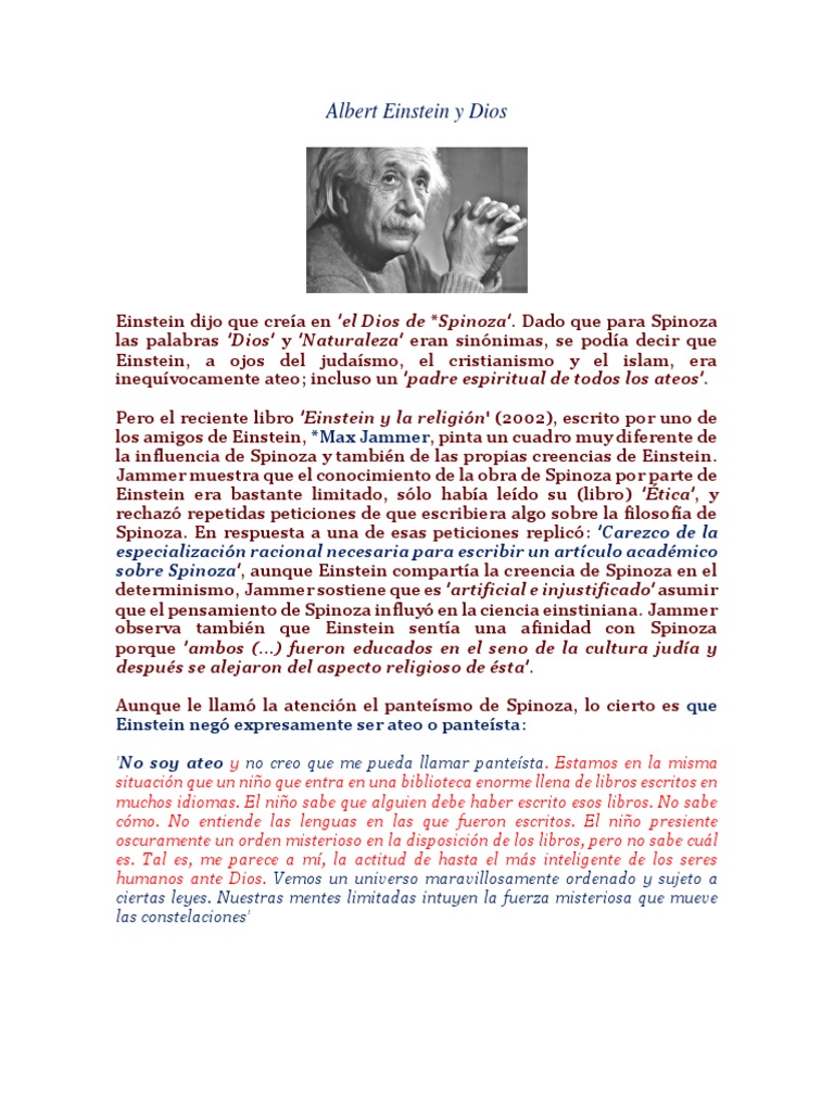 Albert Einstein Y Dios Pdf Baruch Spinoza Ateismo Prueba